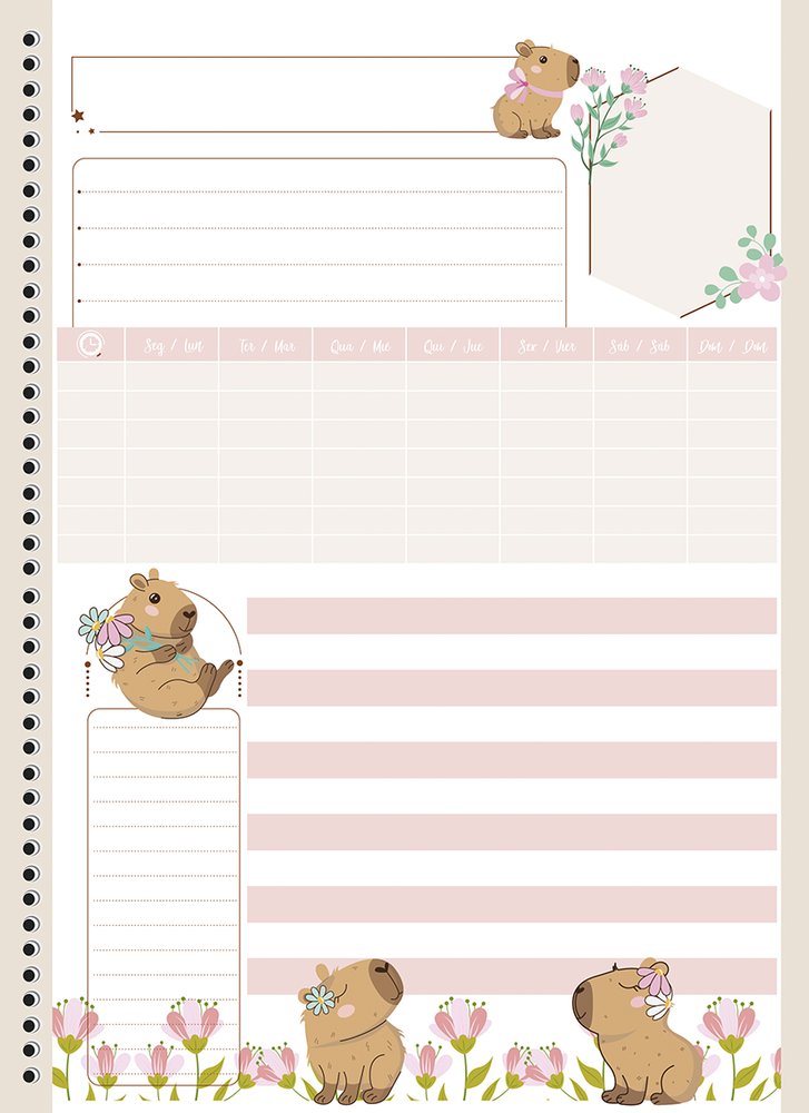 Caderno universitário Espiral 1 matéria Capivara com 160 Folhas – Sortido